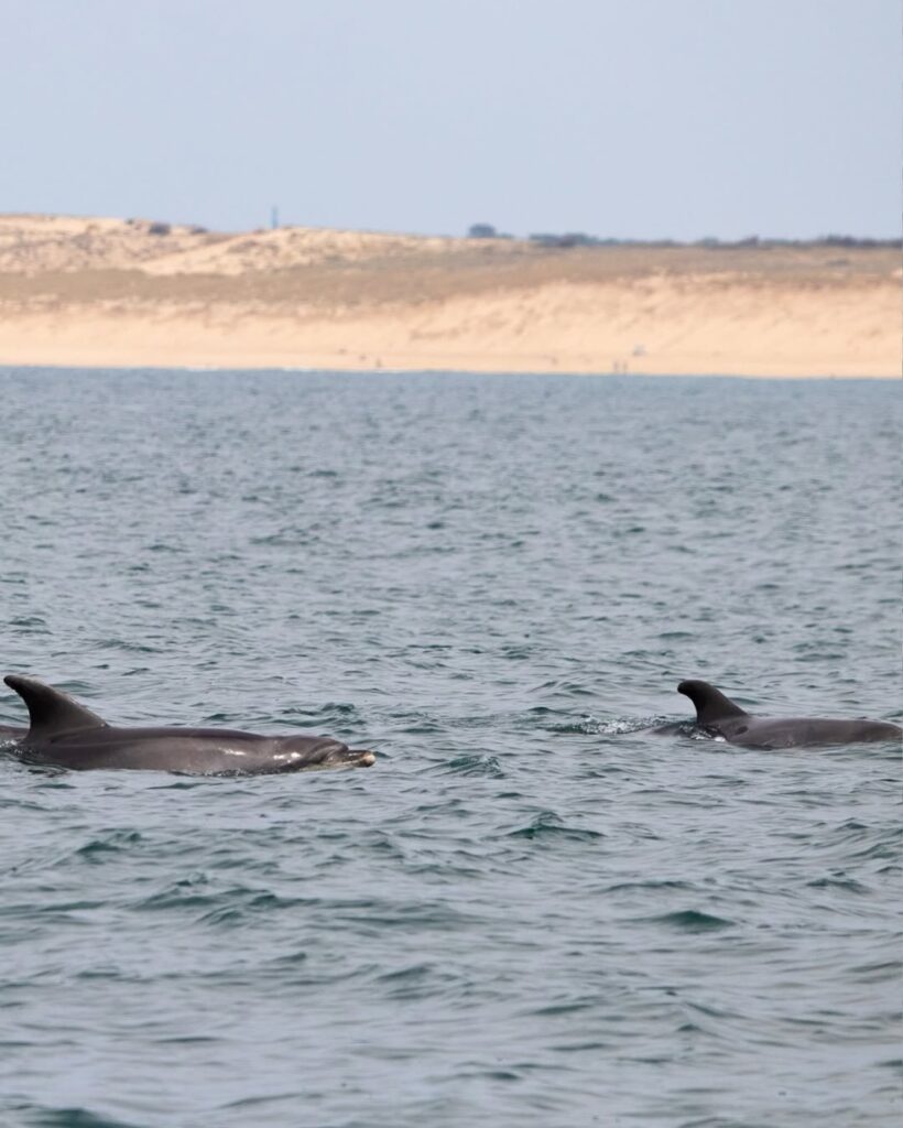 Située sur la côte atlantique, la Dune du Pilat, plus haute dune d’Europe, offre un panorama à couper le souffle. Entre forêt landaise, bancs de sable et océan à perte de vue, le Bassin d’Arcachon est une destination incontournable. Mais lorsque des dauphins apparaissent dans ce cadre, l’expérience prend une dimension encore plus spectaculaire, presque irréelle.