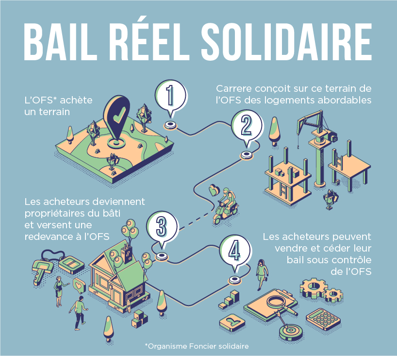 Le principe du bail réel solidaire peut surprendre, mais il repose sur une idée simple. Tu achètes ton logement, mais pas le terrain sur lequel il est construit. Ce dernier reste la propriété d’un organisme à but non lucratif.