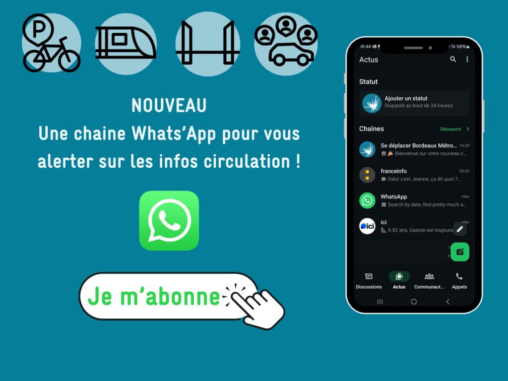 Rejoignez dès maintenant la chaîne WhatsApp “Se déplacer Bordeaux Métropole” et restez alerté en temps réel des fermetures, déviations, travaux et perturbations près de chez vous. 👉 Abonnez-vous ici : https://fcld.ly/chainewhatsapp