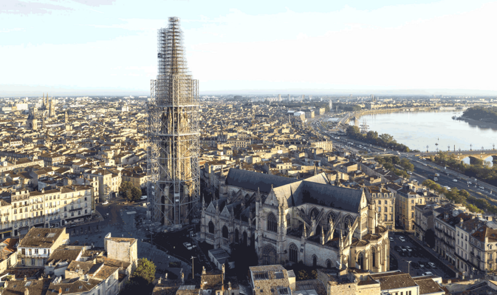Si tu passes régulièrement dans le quartier Saint-Michel, tu as forcément suivi l’évolution du chantier. Pendant quatre ans, la flèche a été entourée d’un impressionnant échafaudage métallique, nécessaire pour sécuriser et restaurer ce monument majeur du patrimoine bordelais.