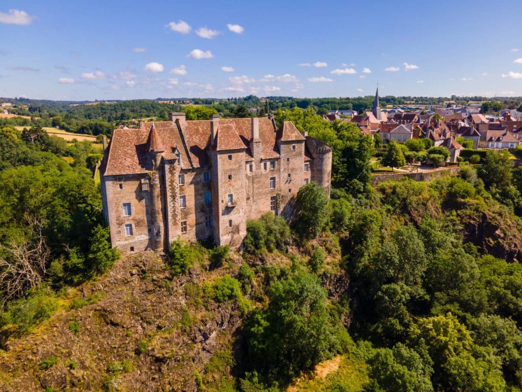 Perché sur un éperon rocheux dominant la vallée de la Petite Creuse, le Château de Boussac est une forteresse emblématique du patrimoine historique français située dans la commune de Boussac (Creuse), en Nouvelle-Aquitaine. Classé monument historique depuis 1930, ce château fascine par son architecture médiévale, son lien avec des figures littéraires et historiques, ainsi que par ses riches collections tapisseries d’Aubusson.