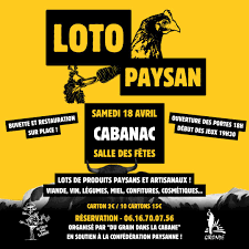 Si tu cherches une sortie conviviale près de Bordeaux, ce rendez-vous pourrait bien te surprendre. Le 18 avril 2026, la Confédération paysanne de Gironde organise son tout premier loto paysan à Cabanac-et-Villagrains.