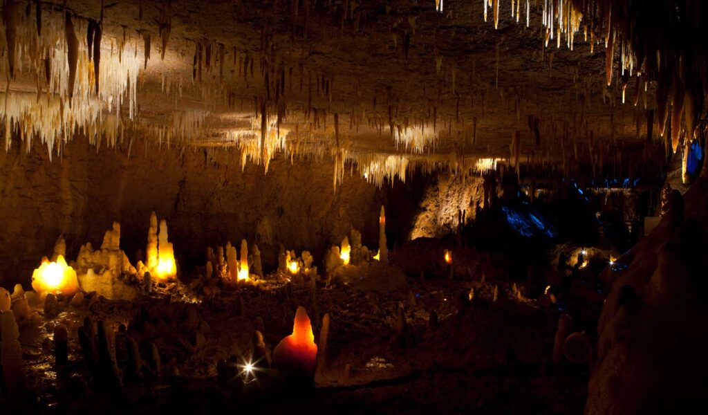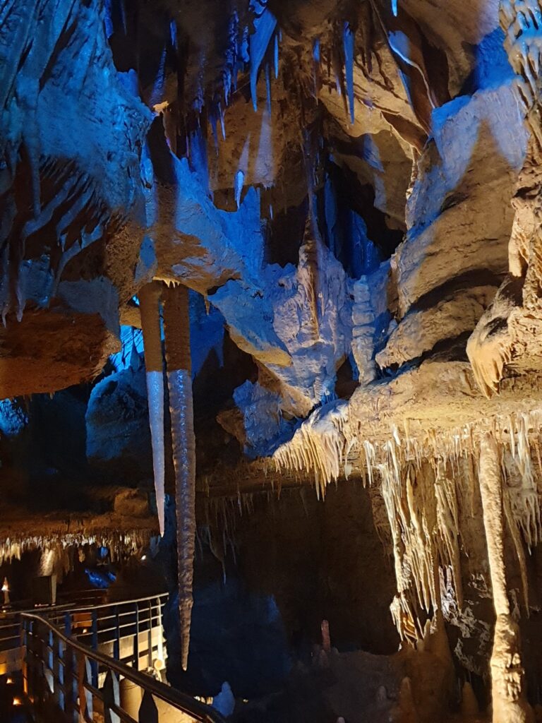 La visite s’effectue sur des passerelles sécurisées, permettant d’explorer la grotte sans altérer son équilibre naturel. L’éclairage, particulièrement soigné, met en valeur les reliefs, les textures et les couleurs de la roche, allant du blanc éclatant aux nuances ocre et ambrées. Chaque espace révèle une ambiance différente, transformant la visite en véritable promenade scénographiée.