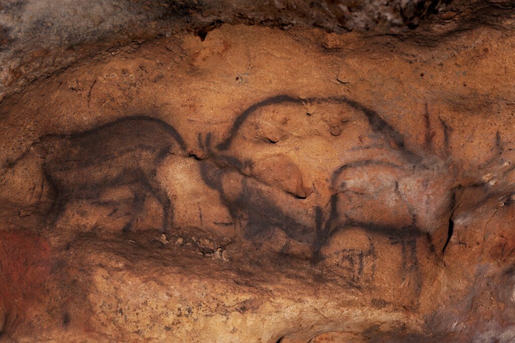 Les parois révèlent plus de 200 représentations, principalement des bisons, mais aussi des mammouths, rennes, chevaux et rhinocéros laineux. Ce qui frappe immédiatement, c’est l’usage maîtrisé de la couleur. Ocres rouges, noirs profonds et nuances brunes sont appliqués avec précision, souvent combinés à la gravure, donnant aux animaux volume, mouvement et profondeur. Les artistes magdaléniens, il y a environ 14 000 ans, ont su exploiter les reliefs naturels de la roche pour renforcer l’expressivité de leurs figures.