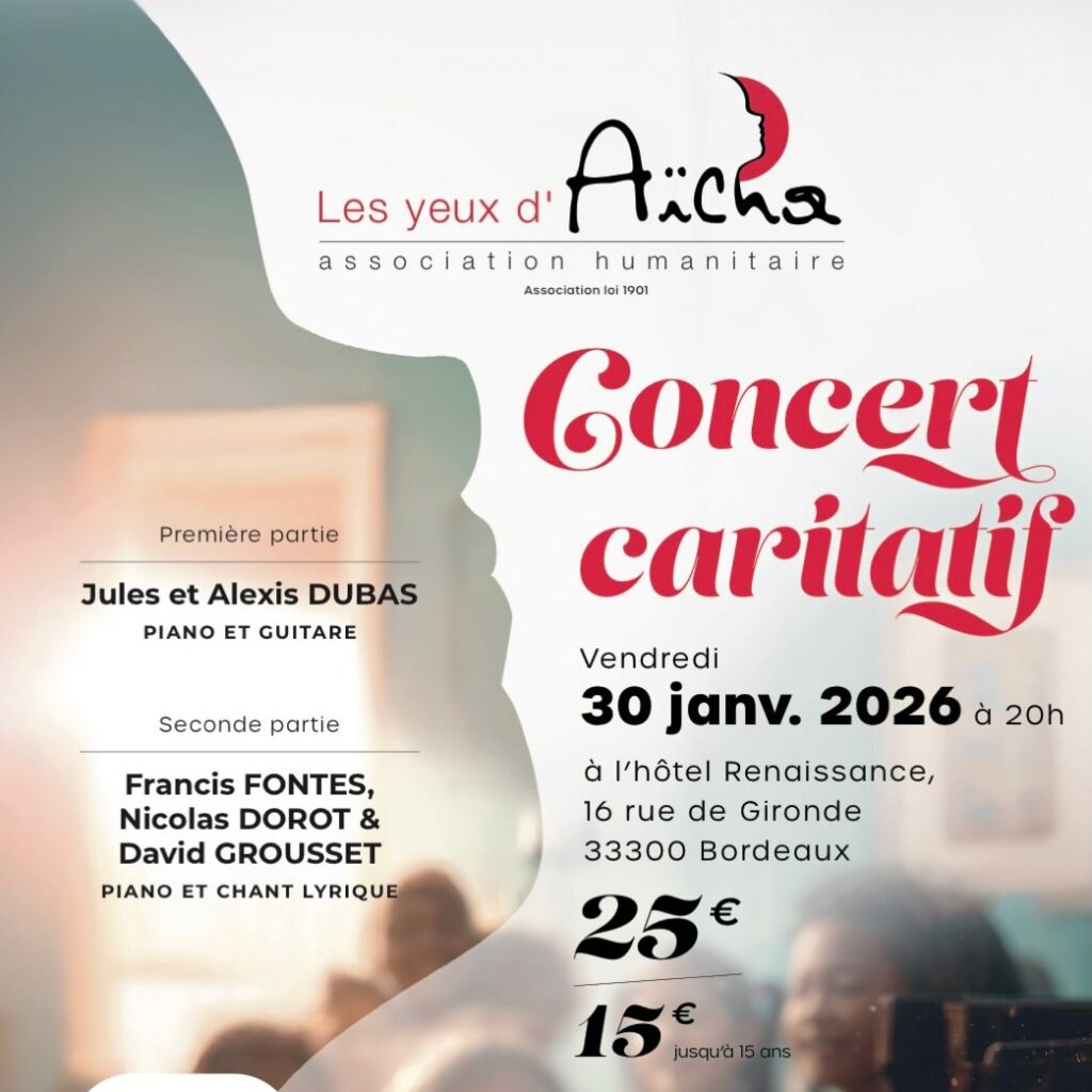 À l’occasion de ce concert solidaire, Les Yeux d’Aïcha réaffirme sa volonté de rendre accessibles des soins alternatifs et complémentaires, encore trop souvent méconnus. Les fonds récoltés lors de l’événement permettront de financer directement des séances d’équithérapie pour des adolescents hospitalisés à l’hôpital Abadie.