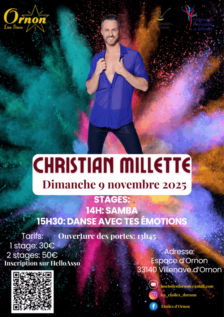 L’association Les Étoiles d’Ornon, club de danse country et line dance situé à Villenave-d’Ornon, a le plaisir d’annoncer un événement exceptionnel les 8 et 9 novembre 2025 au complexe sportif de l’Espace d’Ornon, route de Léognan. Ce week-end s’annonce festif, riche en apprentissage et en émotions, avec la présence du danseur professionnel Christian Millette, figure emblématique de l’émission Danse avec les Stars.