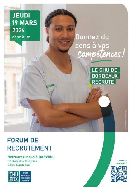Le CHU de Bordeaux ouvre ses portes pour un forum de recrutement, le 19 mars, de 9 h à 17 h, à Darwin, sur la rive droite. Cet événement gratuit permettra de rencontrer les équipes, poser toutes tes questions et explorer les nombreuses opportunités qu’offre l’établissement.
