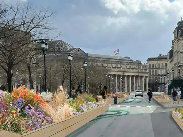 Depuis la fin 2025, les allées de Tourny entrent dans une phase transitoire. Tu peux déjà y repérer des jardinières végétalisées, de nouvelles assises ou encore des trottoirs élargis grâce à des platelages en bois. Une grande estrade offre une vue inédite sur le Grand Théâtre, invitant à lever le nez et redécouvrir le quartier.