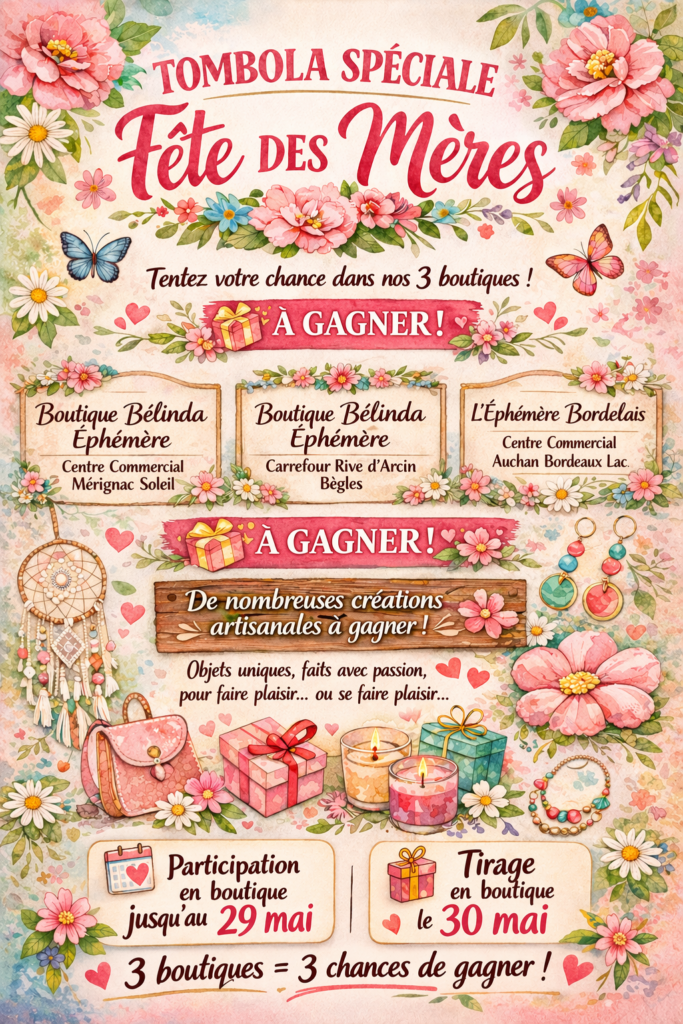Pour marquer cette ouverture et célébrer la Fête des Mères, Bélinda Événementiel organise une tombola gratuite dans ses trois boutiques.