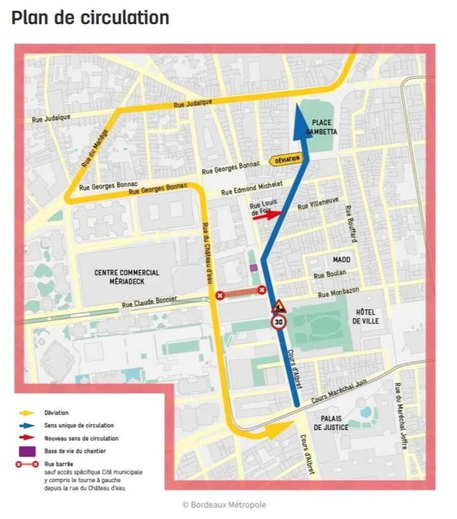 La place Gambetta connaîtra également des restrictions : la circulation générale sera interdite depuis la rue Judaïque, avec un accès réservé aux livraisons et aux riverains. Les sorties se feront via les bornes de la rue Georges-Bonnac et de Toulouse-Lautrec. Pour faciliter les déplacements, le sens de circulation de la rue Louis-de-Foix sera inversé, et depuis la rue Nancel-Pénard, l’obligation de tourner à droite en sortant de la rue de la Boétie sera maintenue.