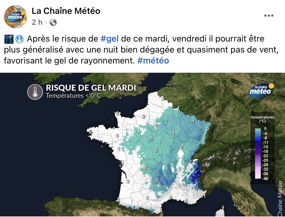 Vendredi devrait offrir un ciel plus dégagé, mais des températures encore plus basses. Météo France prévoit 1 °C au lever du jour à Bordeaux, pour 9 °C l’après-midi. La Chaîne Météo estime même que le thermomètre pourrait descendre jusqu’à 0 °C.