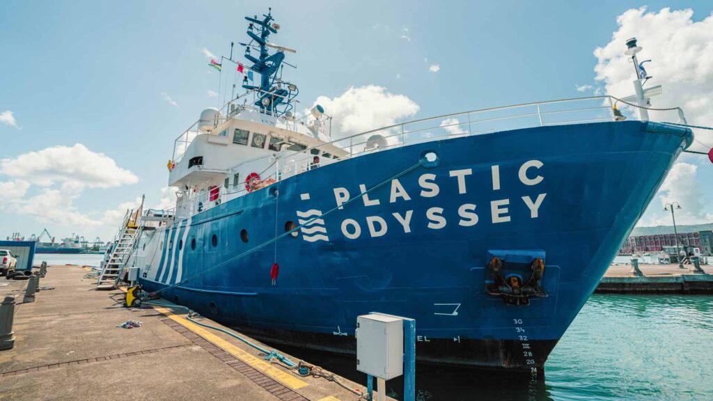 Amarré au ponton d’honneur, le Plastic Odyssey ne passe pas inaperçu. Long de 40 mètres, cet ancien navire d’océanographie a été transformé en véritable laboratoire flottant dédié à la lutte contre les déchets plastiques.