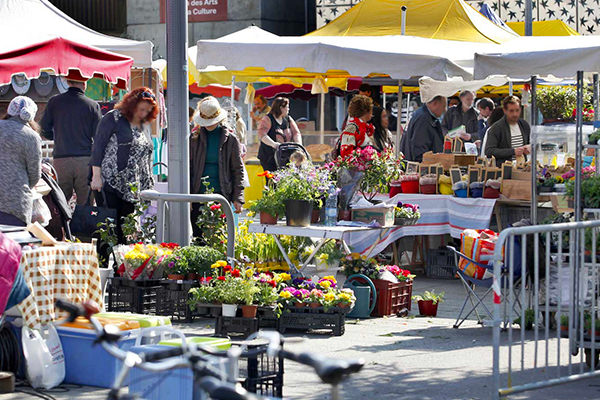Installé sur la place Florale, ce marché dominical accueille une soixantaine de commerçants et producteurs. Fruits, légumes, fromages, poissons, huîtres et fleurs y sont proposés dans une ambiance conviviale et locale.