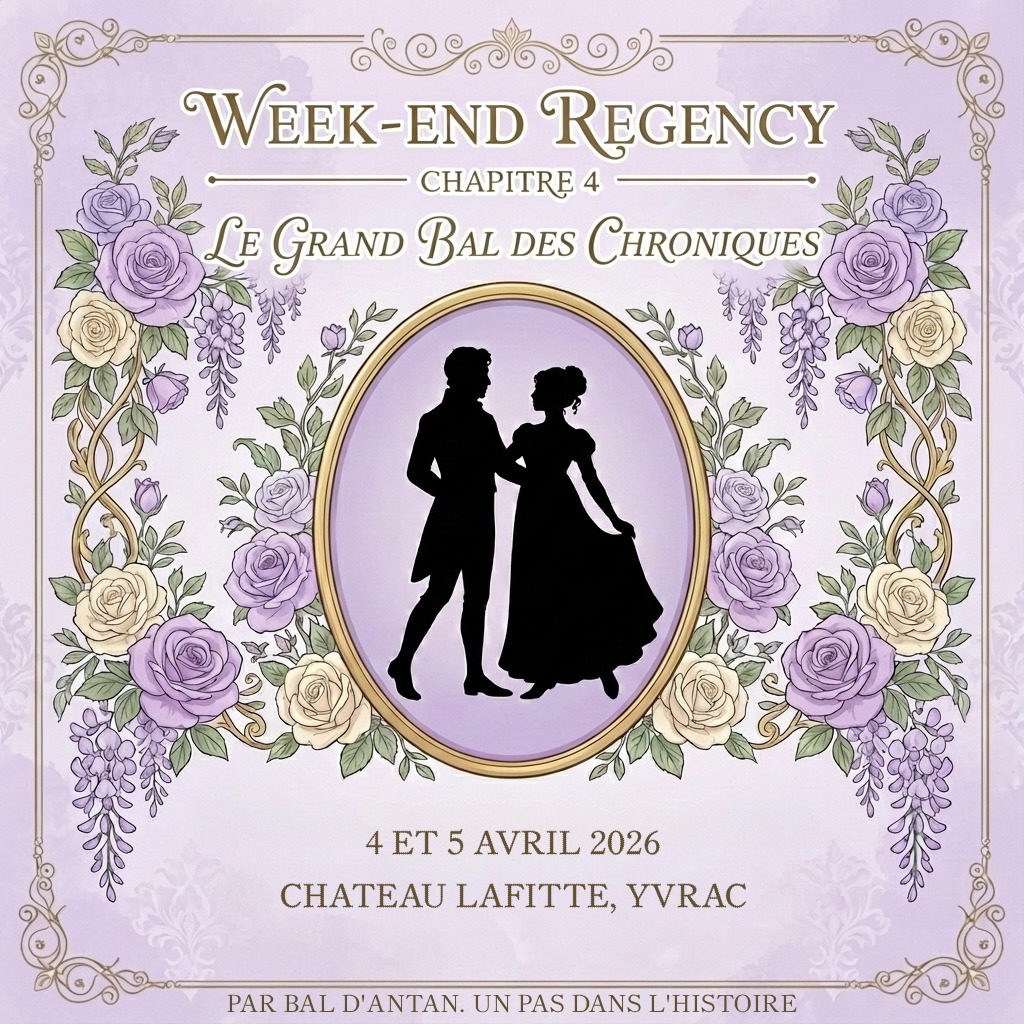 Prépare-toi à voyager dans le temps le week-end du 4 et 5 avril 2026 avec Bal d’Antan pour le Grand Bal des Chroniques, un événement unique qui te plonge dans l’atmosphère raffinée de la Régence anglaise.