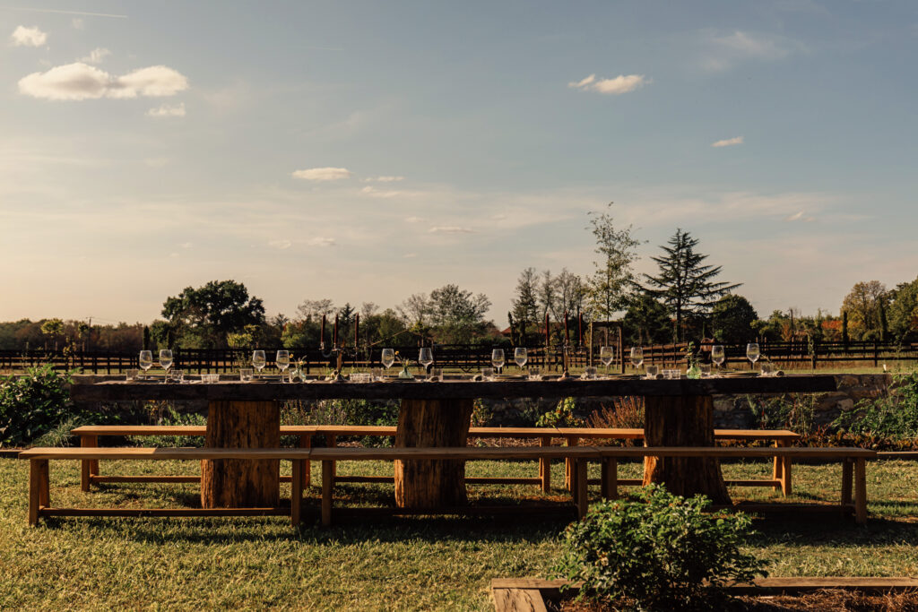 Mais l’expérience ne s’arrête pas là. Tu partages ce moment autour d’une grande table unique, installée en plein air, dans une ambiance conviviale et intimiste. Le décor mêle nature, vieilles pierres et vignobles environnants, pour une immersion totale.