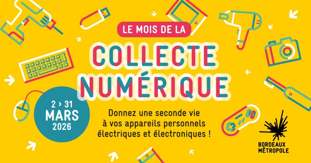 Du 02 au 31 mars 2026, tu as une occasion concrète d’agir pour un numérique plus responsable. À l’initiative de Bordeaux Métropole, le Mois de la collecte numérique revient pour sa troisième édition, et il compte sur toi.
