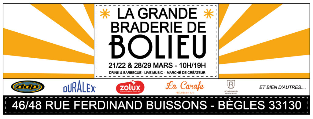 La Grande Braderie de Bolieu se déroulera les 21 et 22 mars, puis les 28 et 29 mars 2026, de 10h à 20h. L’événement se tiendra au 48 rue Ferdinand Buisson à Bègles, facilement accessible en tram, en bus ou en voiture.