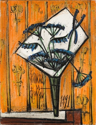 Cette collection, inédite, retrace près d’un demi-siècle de création. « Nous présentons 63 pièces, des huiles sur toile, des dessins, des esquisses et des projets qui couvrent l’ensemble de la carrière de Bernard Buffet », précise Élisabeth Maréchaux, experte de la vente. Tous les grands thèmes chers au peintre sont représentés : vanités, autoportraits, paysages, bouquets et figures de cirque.
