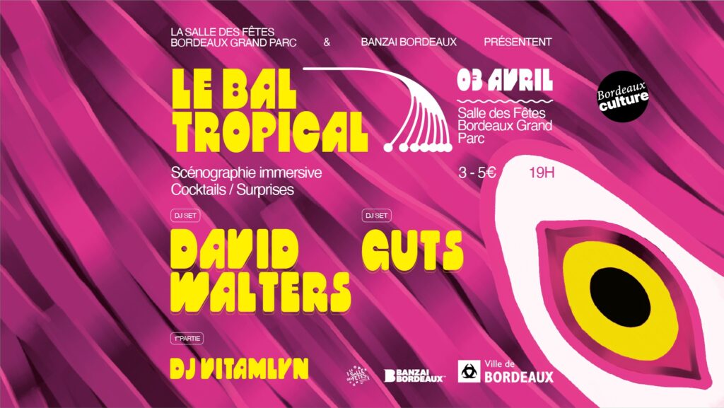 Bordeaux, prépare-toi à danser pour fêter la fin de l’hiver ! Le Bal Tropical t’invite le temps d’une soirée à la Salle du Grand Parc à vibrer au rythme des DJ sets de GUTS, David Walters et Vitamlyn.