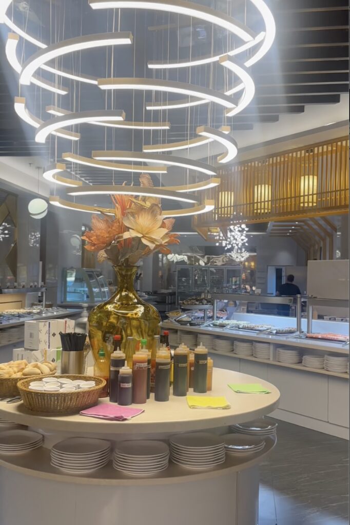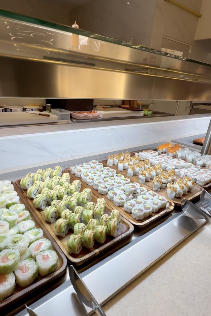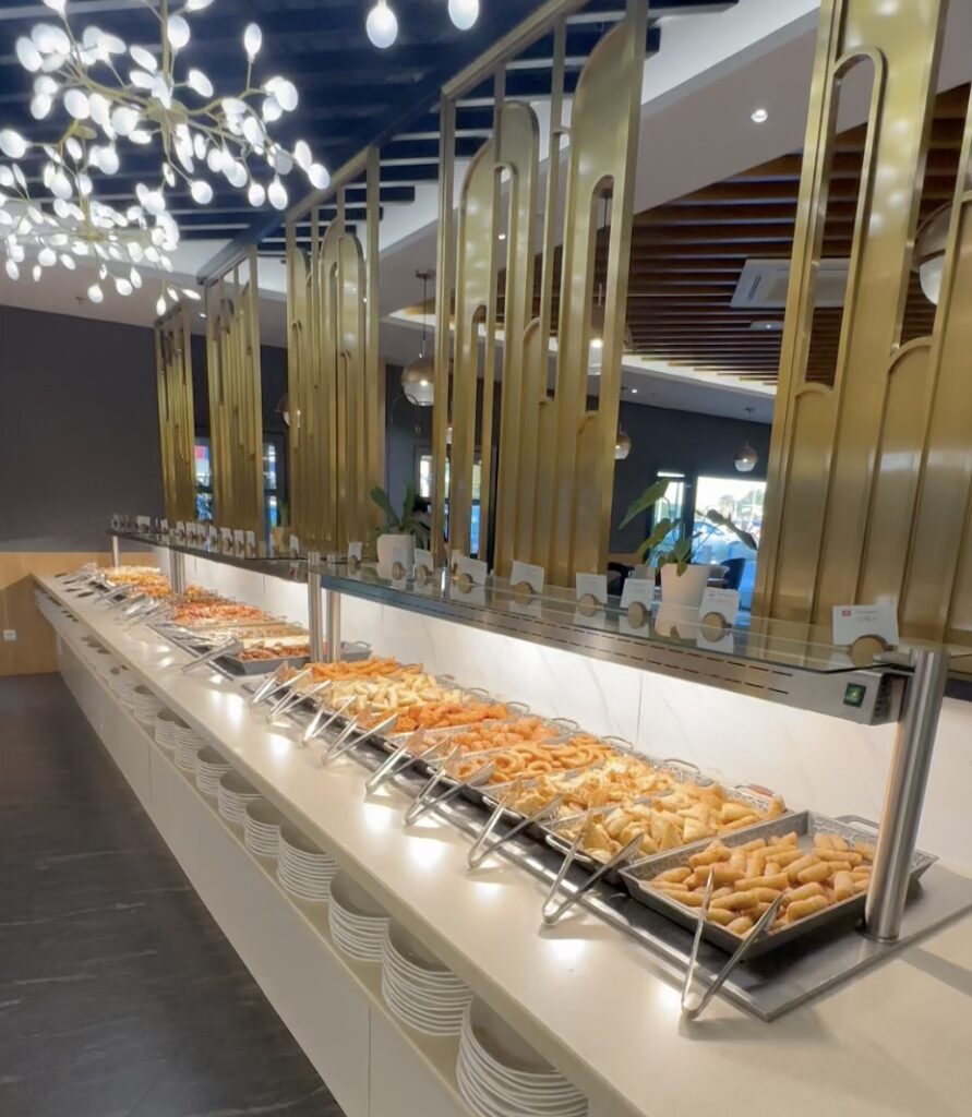 Au buffet, chacun y trouve son compte : grillades, woks, fruits de mer, bar à sushis et salades, fritures, sans oublier un stand de bonbons et desserts pour les becs sucrés. La formule à volonté permet de se resservir autant de fois que l’on souhaite, et le large choix de boissons complète le repas.