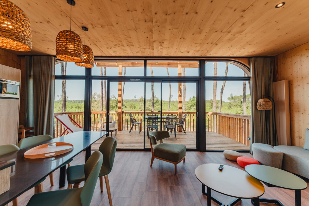 - Maisons dans les Arbres : perchées dans la pinède, elles offrent des chambres spacieuses et une terrasse privée pour un séjour au plus près de la nature.