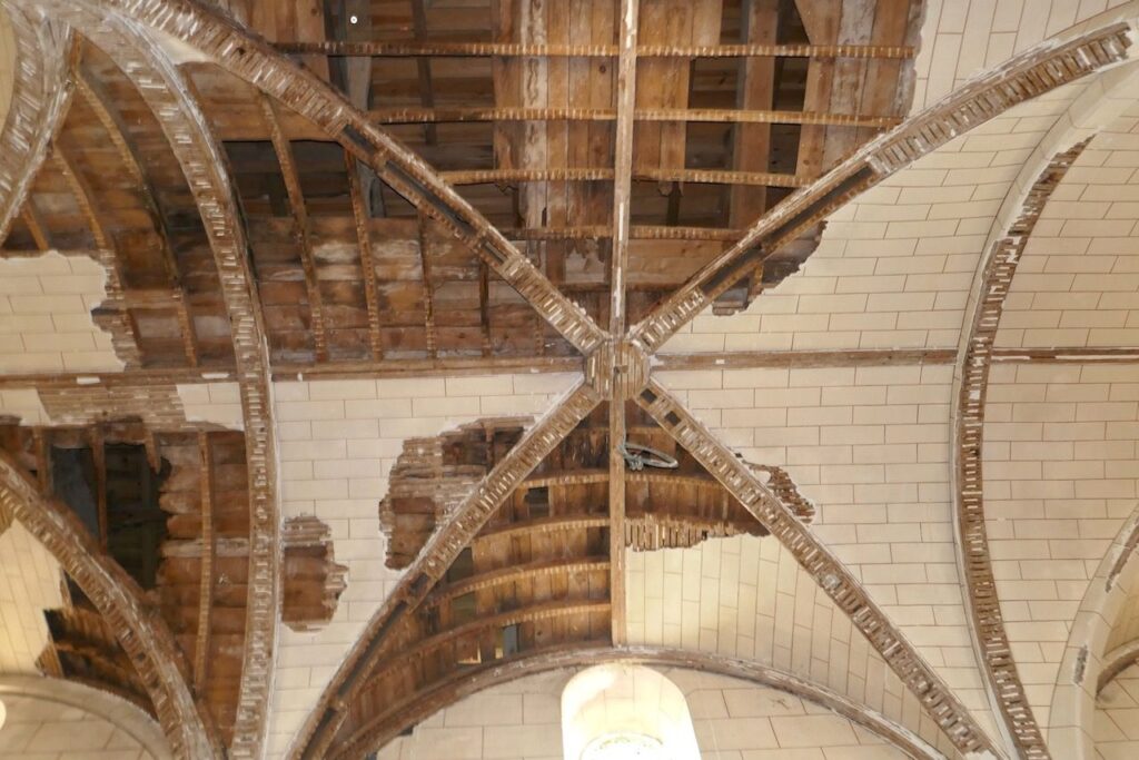 Depuis, un important chantier de restauration a permis de sécuriser et de rénover le plafond de la nef. Les nouvelles voûtes en plâtre redonnent aujourd’hui tout son cachet à l’intérieur du bâtiment.