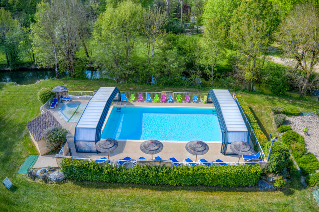 Plonge dans l’une des piscines chauffées du Camping Le Douzou et savoure des vacances en famille au grand air.