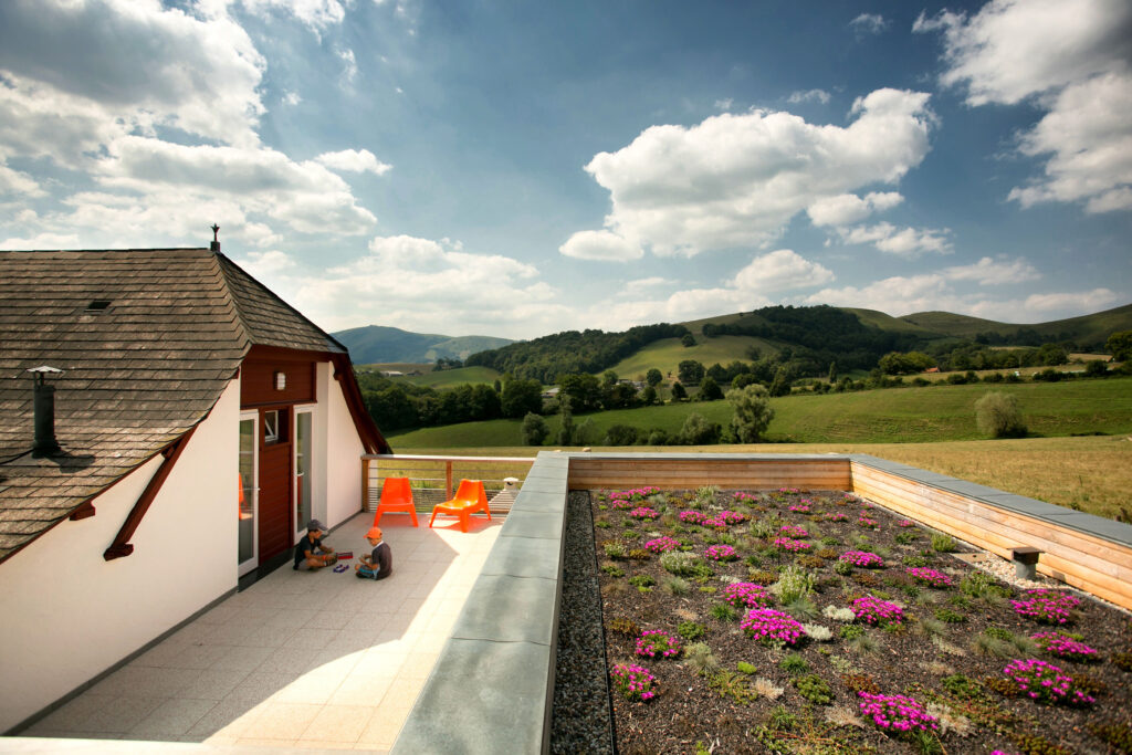 Pour plus d’intimité, la ferme dispose de deux chalets indépendants, conçus comme des petites maisons de « Playmobil » avec leurs toits pointus. L’un accueille 4 personnes, l’autre 5. Chaque chalet possède une terrasse extérieure pour profiter de la tranquillité environnante et observer la chaîne des Pyrénées. Ouverts toute l’année, ils sont parfaits pour un séjour familial ou entre amis.
